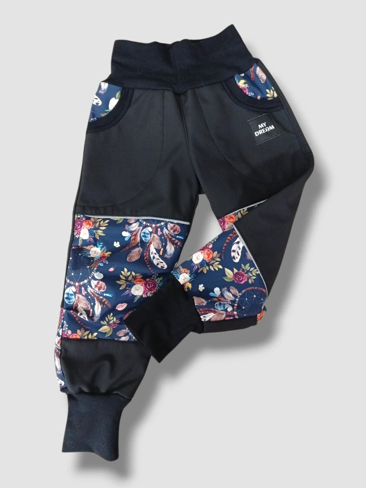 - KALHOTY : velké funkční kapsy , reflexní prvky ve předu i v zadu. Prošité ve švech. Na nohavicích a v pase je bavlněný náplet, který je vysoký a lze tedy kalhoty nosit jako rostoucí . V nápletu v pase je vložena měkká guma, která se natáhne o cca 8-10cm