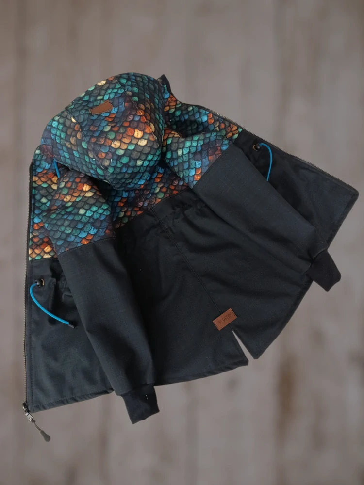✅V pase je stahovaní na šňůrku s brzdičkou, v kapuci totéž.Praktické náplety na rukávech aby do rukávů nefoukalo a lze nosit při podhrnuti jako rostoucí
