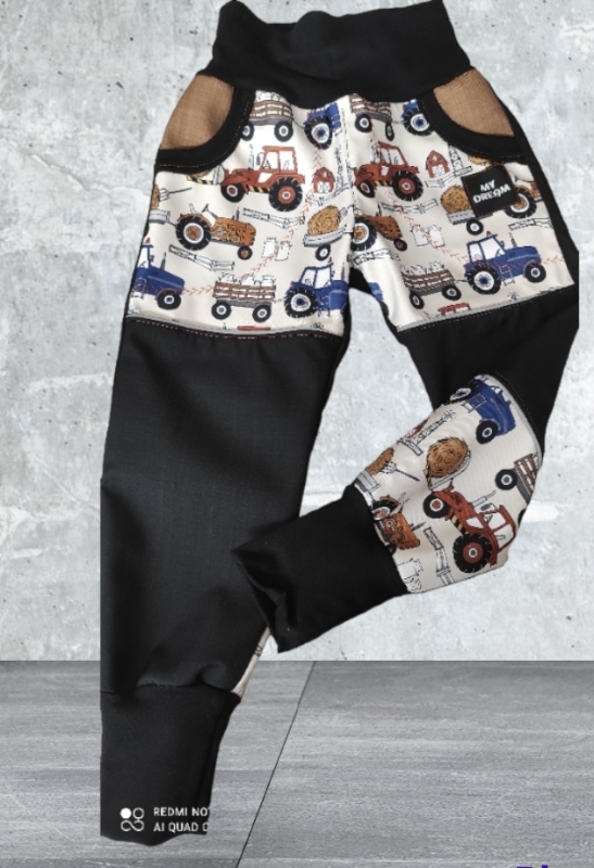 - KALHOTY : velké funkční kapsy , reflexní prvky ve předu i v zadu. Prošité ve švech. Na nohavicích a v pase je bavlněný náplet, který je vysoký a lze tedy kalhoty nosit jako rostoucí . V nápletu v pase je vložena měkká guma, která se natáhne o cca 8-10cm