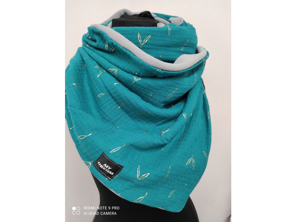 zlaté lístky na světlé petroleji / šedý fleesskladem ihned k odeslání 🙀330 Kč/ ks